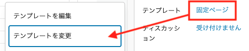 テンプレートの 固定ページ をクリックし、テンプレートを変更 を選択してください。