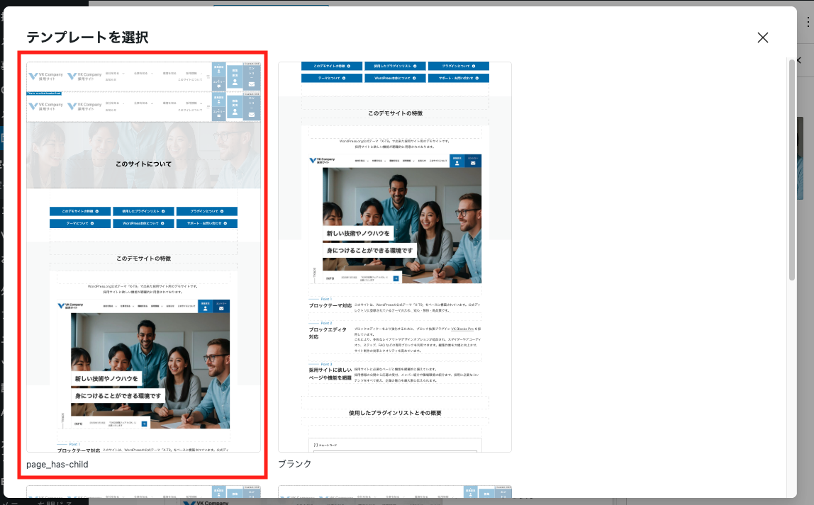 テンプレートの中から page_has-child をクリックすると変更できます。